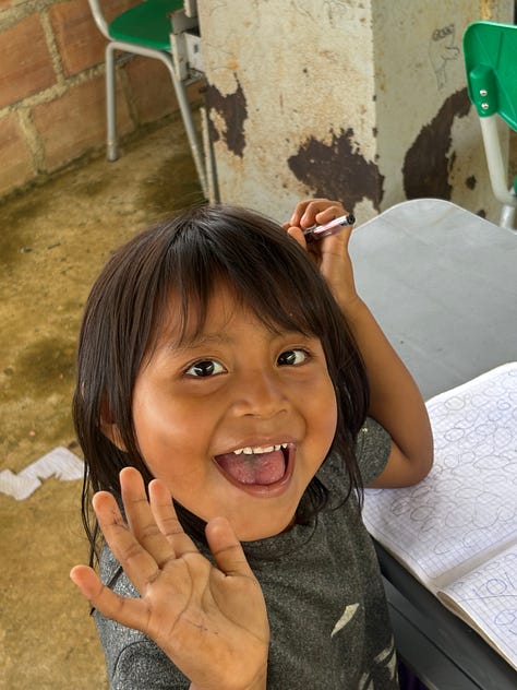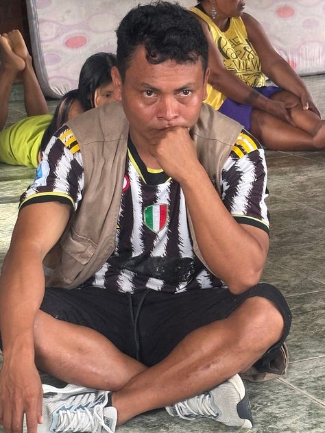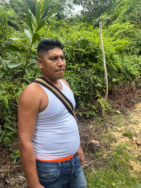 First stop: a displaced Indigenous community camped out at a radio station. For more than a quarter century this community has been under attack. Paramilitaries. FARC guerrillas. Drug traffickers. Time and again, until it was just too much. In 2022 the whole community uprooted and moved here. Twenty-two families, 95 people. All living beside the booming radio station, now and probably mostly playing broken-hearted drinking songs.