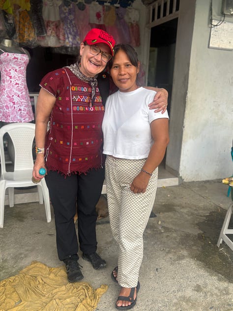 Maru, Martha and Candelaria take a chance to wash out their clothes. They’ve been on the road for a while. COMPAZCOL works in 140 communities in 14 departments, advocating for victim’s rights and creating lasting strong structures for peace. I don’t know why I’m the tired one! I take a quick nap. Then we’re out to visit. Maru has got a hand in every pie.